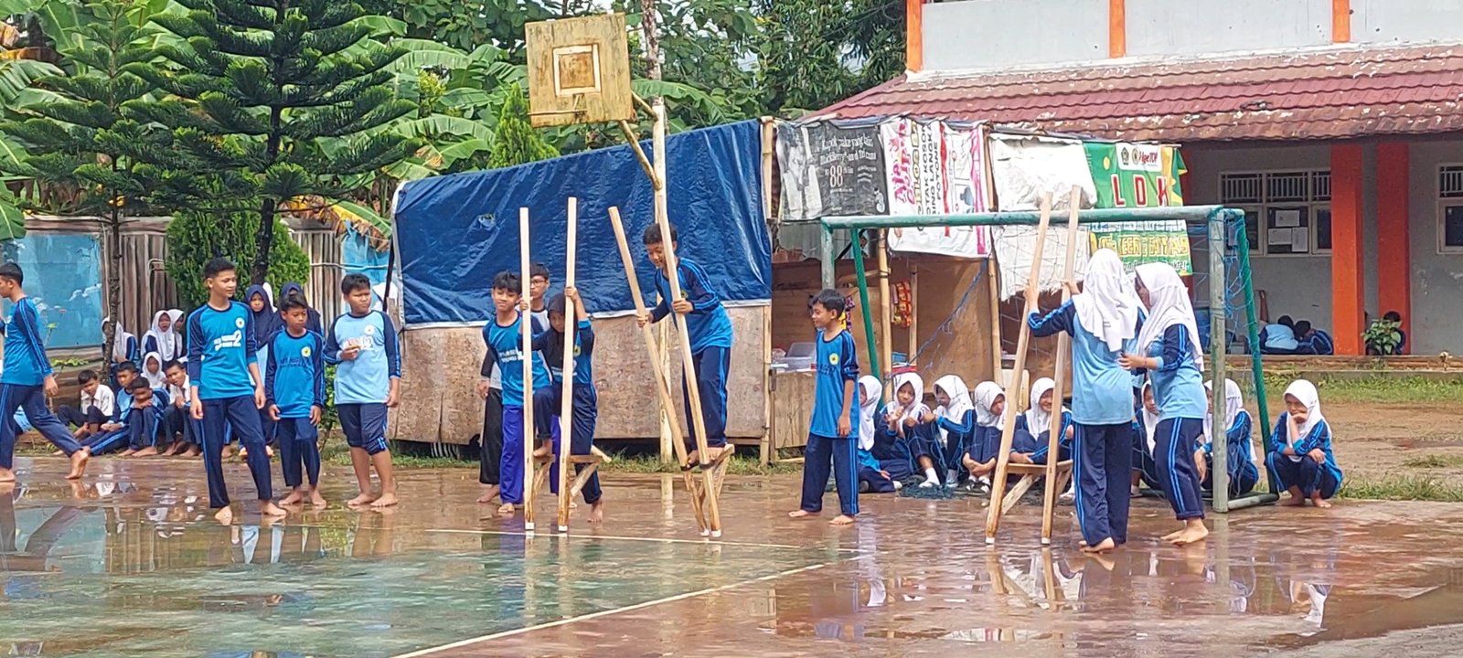 Lomba Egrang Meriahkan Class Meeting MTsN 2 Banyumas
