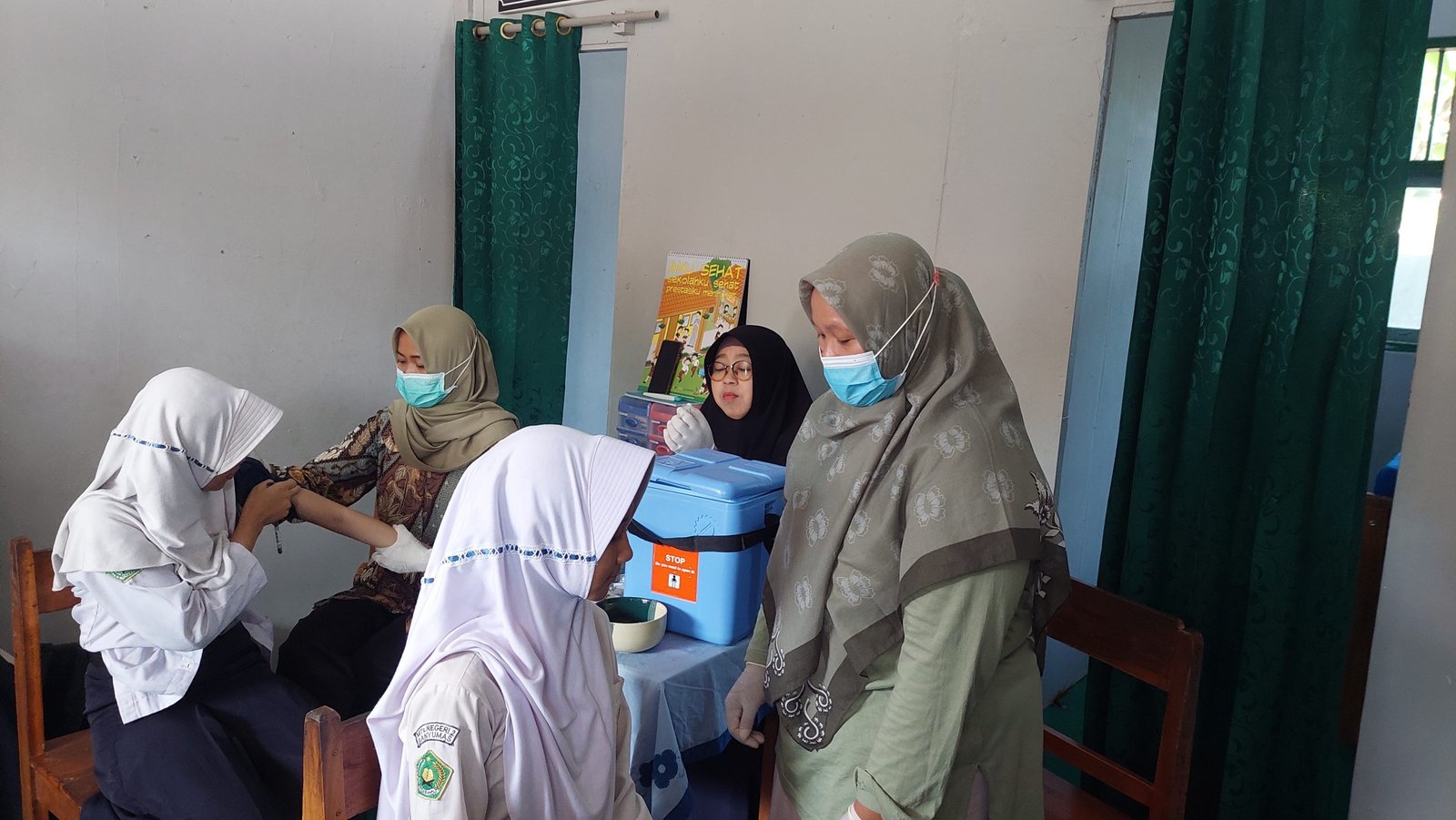 Kegiatan pemeriksaan kesehatan gratis (PKG) yang dilakukan oleh pihak Puskesmas Tambak 1 merupakan kegiatan rutinitas dan berkelanjutan. Untuk pemeriksaan kelas VII putri terdapat tambahan pemeriksaan/skrining anemia (Hb) dan pemeriksaan gula darah sewaktu (gds). Sedangkan untuk pemeriksaan kelas IX putri diberikan vaksinasi HPV.