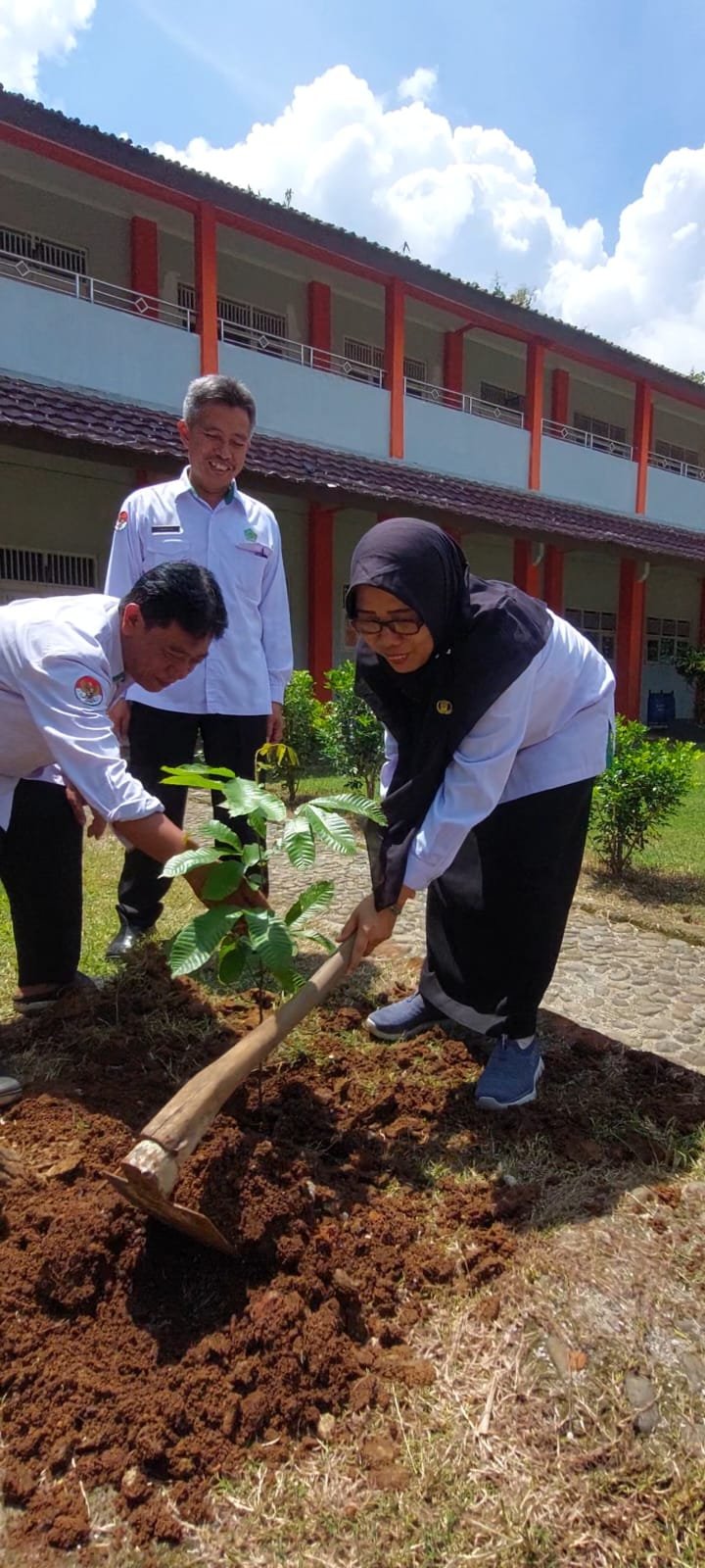 Banyumas (Humas) – Seluruh ASN tenaga pendidik dan kependidikan MTsN 2 Banyumas ikut serta dalam kegiatan penanaman pohon Matoa untuk memperingati Hari Bumi pada 22 April 2025. Setiap ASN wajib menanam pohon matoa sebanyak tiga batang bisa di lingkungan rumah, tempat ibadah atau di madrasah. Kegiatan penanaman pohon matoa merupakan tindak lanjut dari Surat Edaran Sekretaris Jenderal Kemenag Nomor 182 Tahun 2025 tentang Gerakan Nasional Penanaman Pohon dalam Perspektif Ekoteologi, Selasa, (22/04/2025).Dasar perintah sekaligus anjuran dari Kementerian Agama Kabupaten Banyumas, setiap satker yang berada di bawah naungan Kemenag Banyumas melaksanakan gerakan penanaman 1 juta pohon Matoa secara serentak dalam rangka memperingati Hari Bumi 22 April 2025. Kegiatan ini juga akan melibatkan berbagai pihak, termasuk instansi pendidikan di bawah naungan Kemenag, termasuk MTsN 2 Banyumas.Melalui kegiatan ini, warga madrasah diajak untuk tidak hanya menanam pohon, tetapi juga menyebarluaskan semangat cinta lingkungan dengan cara membersihkan lingkungan membuang sampah pada tempatnya dan menjaga saluran drainase agar tetap lancar. Pohon Matoa dipilih karena rindang dan menghasilkan buah yang lezat serta bernilai ekonomi tinggi. Diharapkan selain bisa memberikan nuansa rindang dan hijau di lingkungan juga bisa menghasilkan buah yang bisa dinikmati oleh keluarga atau bisa di jual.Taufik, selaku Ka.Tata Usaha MTsN 2 Banyumas menyampaikan bahwa, “Sesuai anjuran dan surat edaran dari Kementerian Agama Kabupaten Banyumas, maka seluruh ASN di MTsN 2 Banyumas diharapkan bisa melaksanakan dengan baik kegiatan penanaman pohon matoa. Hal ini tentunya perlu kita sikapi dengan baik, mengingat banyak sekali di sekitar wilayah Kabupaten Banyumas bencana baik itu banjir atau tanah longsor. Tentunya kegiatan penanaman pohon matoa bisa menjaga ekosistem dan lingkungan kita sehingga terhindar dari becana,” tutur Taufik.Kegiatan penanaman pohon matoa di madrasah diawali dengan ditanaminya pohon matoa oleh Kepala MTsN 2 Banyumas, Atik Restusari dan Ka.TU serta wakil kepala madrasah. Kemudian dilanjutkan oleh seluruh guru ASN yang bisa menanam nya di lingkungan rumah, lingkungan tempat ibadah atau di madrasah.Atik Restusari, selaku Kepala MTsN 2 Banyumas juga sangat mendukung dan ikut berpartisipasi langsung dalam kegiatan ini, “Semoga dengan kegiatan menanam pohon matoa ini bisa membawa banyak manfaat untuk kita dan generasi setelah kita. Dengan menanam pohon kita sudah memberikan warna hijau untuk alam dan bumi ini. Karena, hijaunya pohon di bumi bisa memberikan sejuta manfaat baik untuk manusia, juga untuk hewan sebagai tempat hidup juga untuk alam itu sendiri agar selalu terjaga,” terang Atik.(Ning/twm)